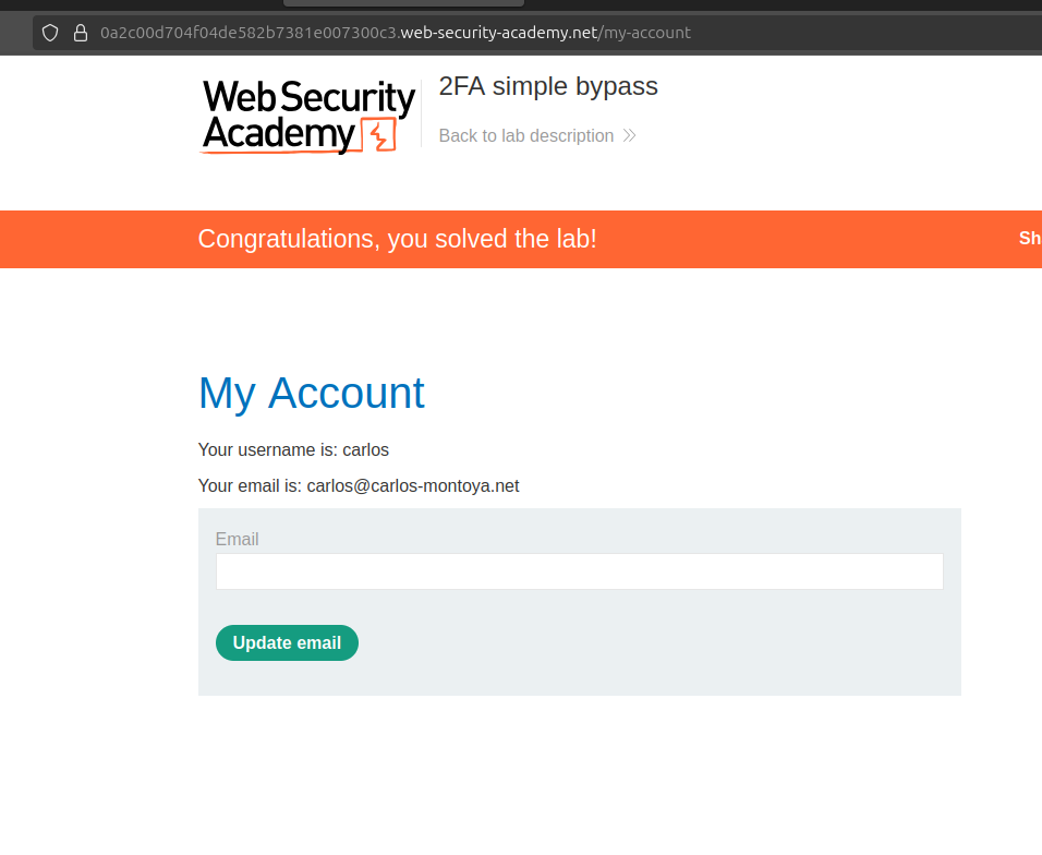 Now we can login as carlos:montoya as can attempt to bypass the 2FA